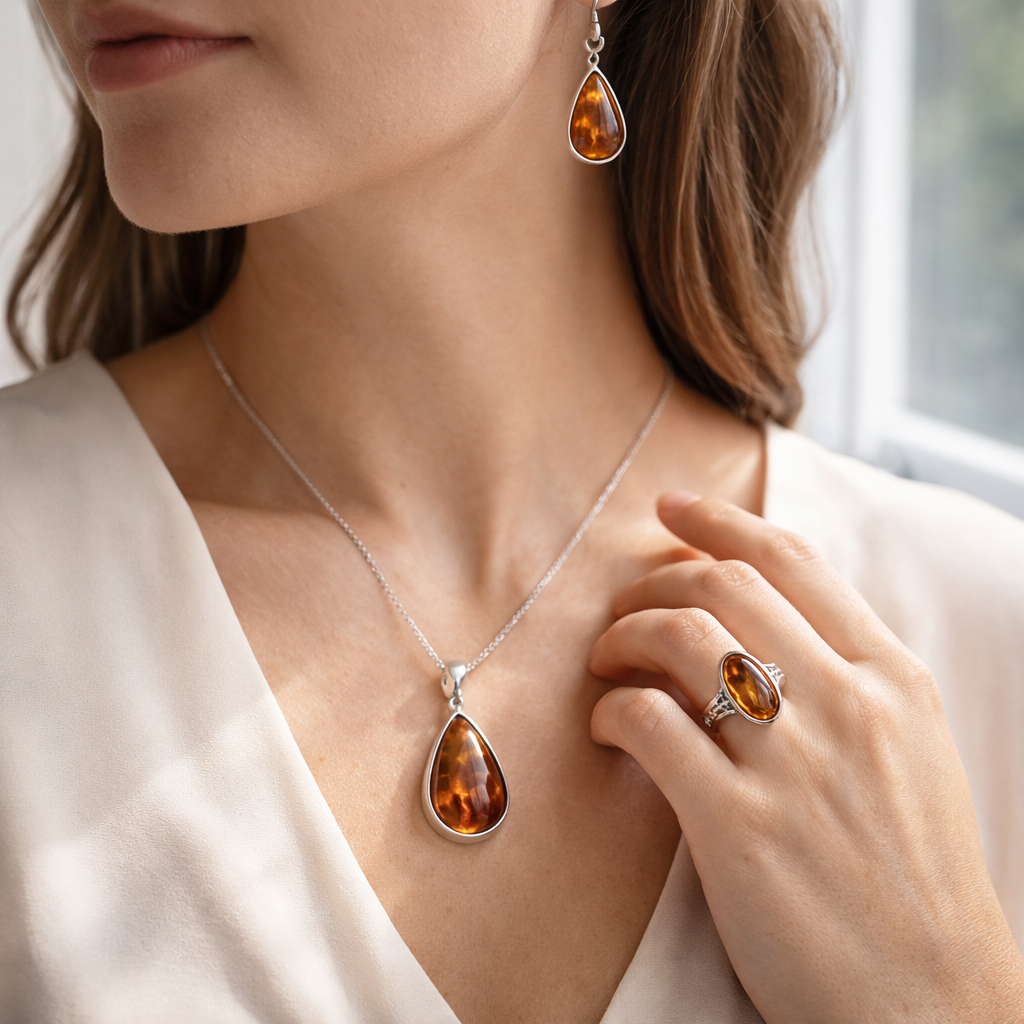 One of the best things about amber jewelry is how easy it is to style. Its warm glow works across seasons and pairs well with both casual and dressier looks.