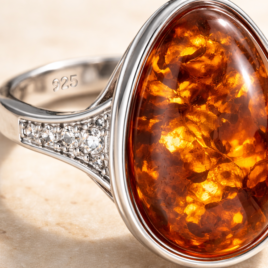 Sterling silver 925 gives amber a clean, polished finish and works beautifully with both modern and traditional designs. It is a great choice when you want a look that feels refined but not too formal.