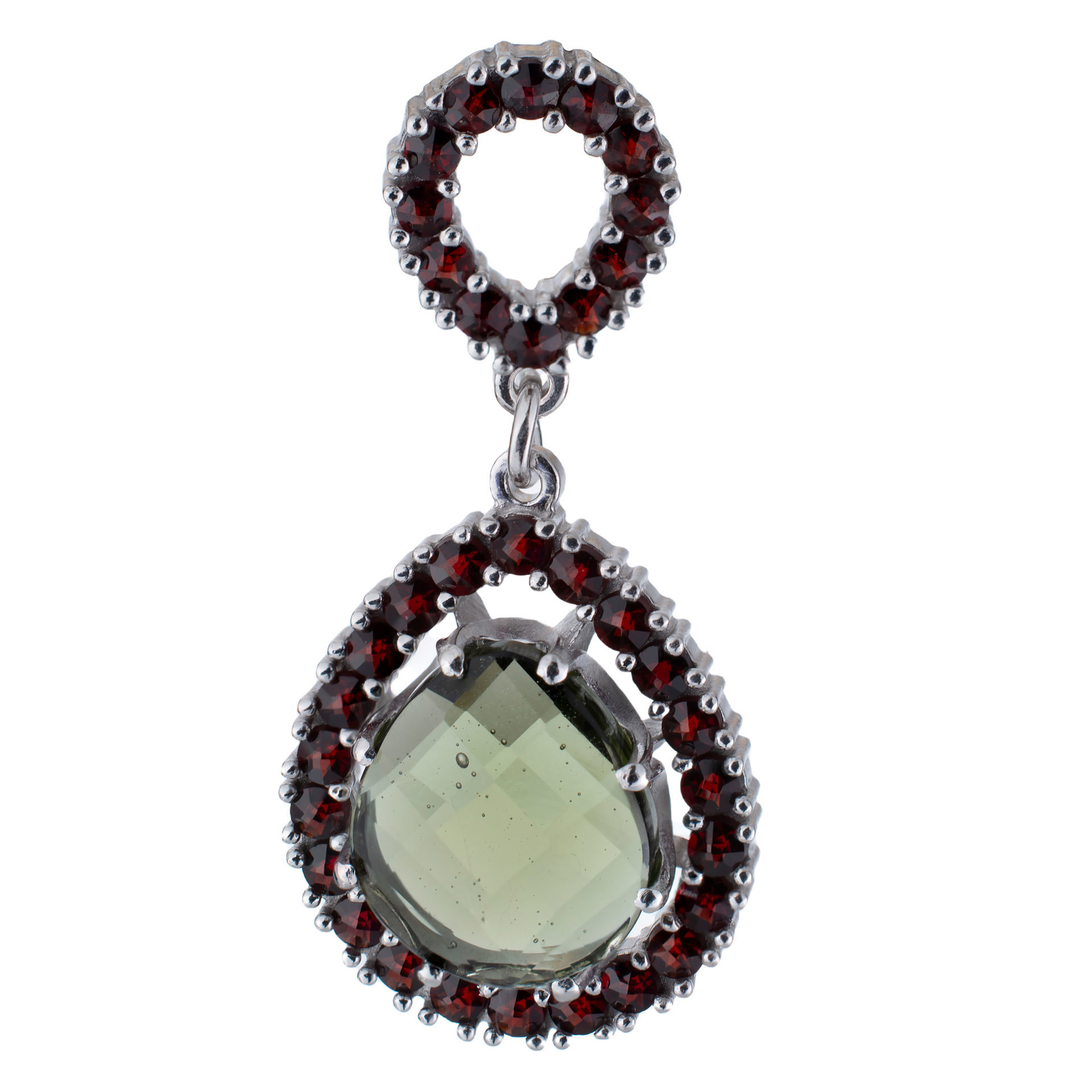 Bohemian Garnet And Moldavite Sterling Silver Pear Shaped Pendant