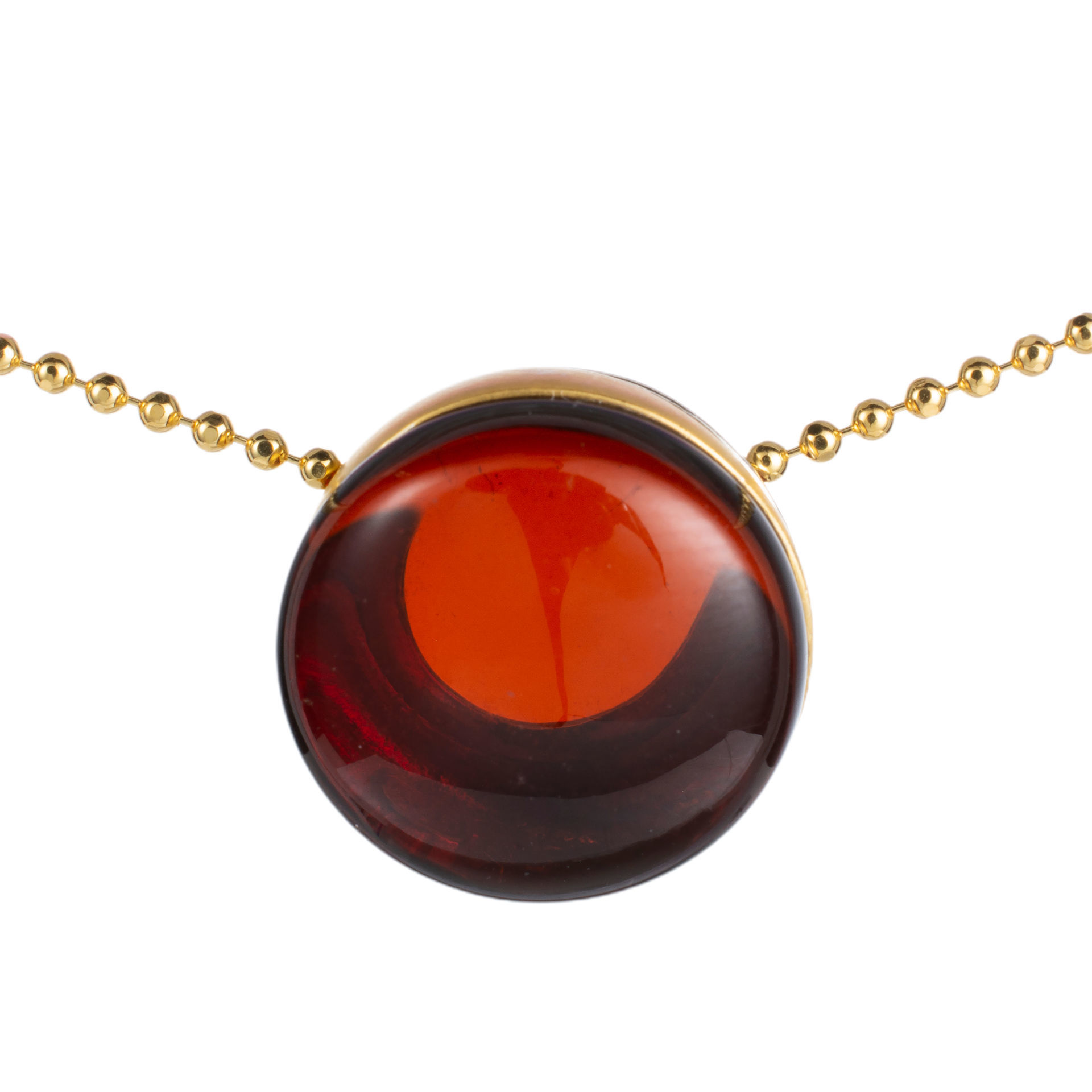 - Gold Plated 925 Sterling Silver Cherry Baltic Round Amber Pendant