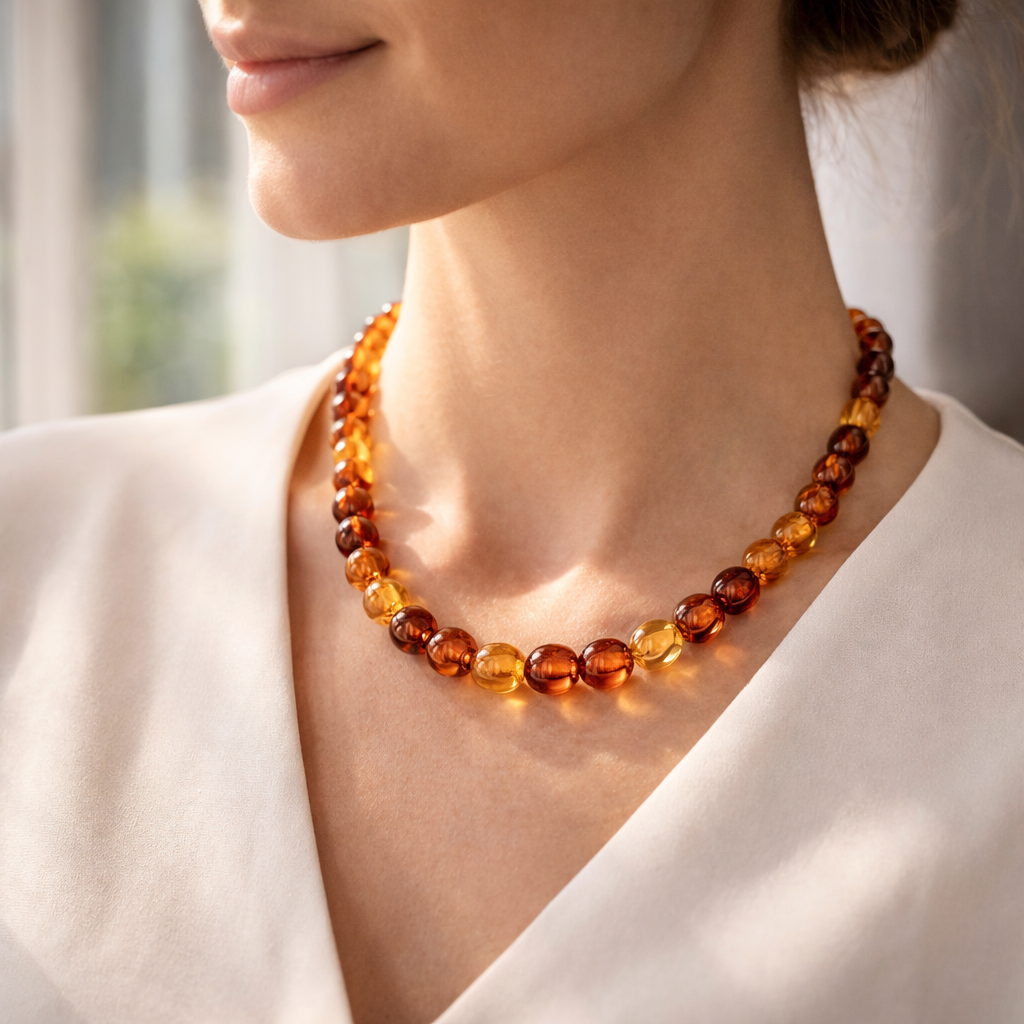 An amber necklace does not need a complicated routine to stay beautiful. A few simple habits can help preserve its warm glow, smooth finish, and everyday charm, whether you wear it often or save it for special occasions.