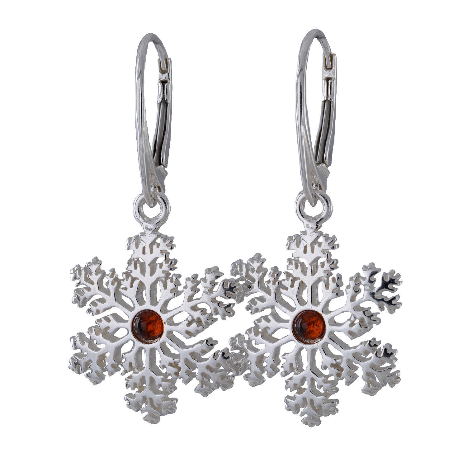 • Turn a flurry of fashion into a snowfall of excellent taste by pairing up these amber snowflake earrings with a Baltic Amber and Sterling Silver Snowflake Pendant.