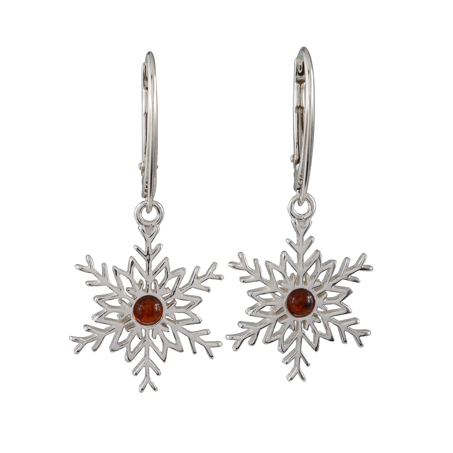 Sterling Silver and Baltic Amber French Leverback Amber Snowflake Earrings