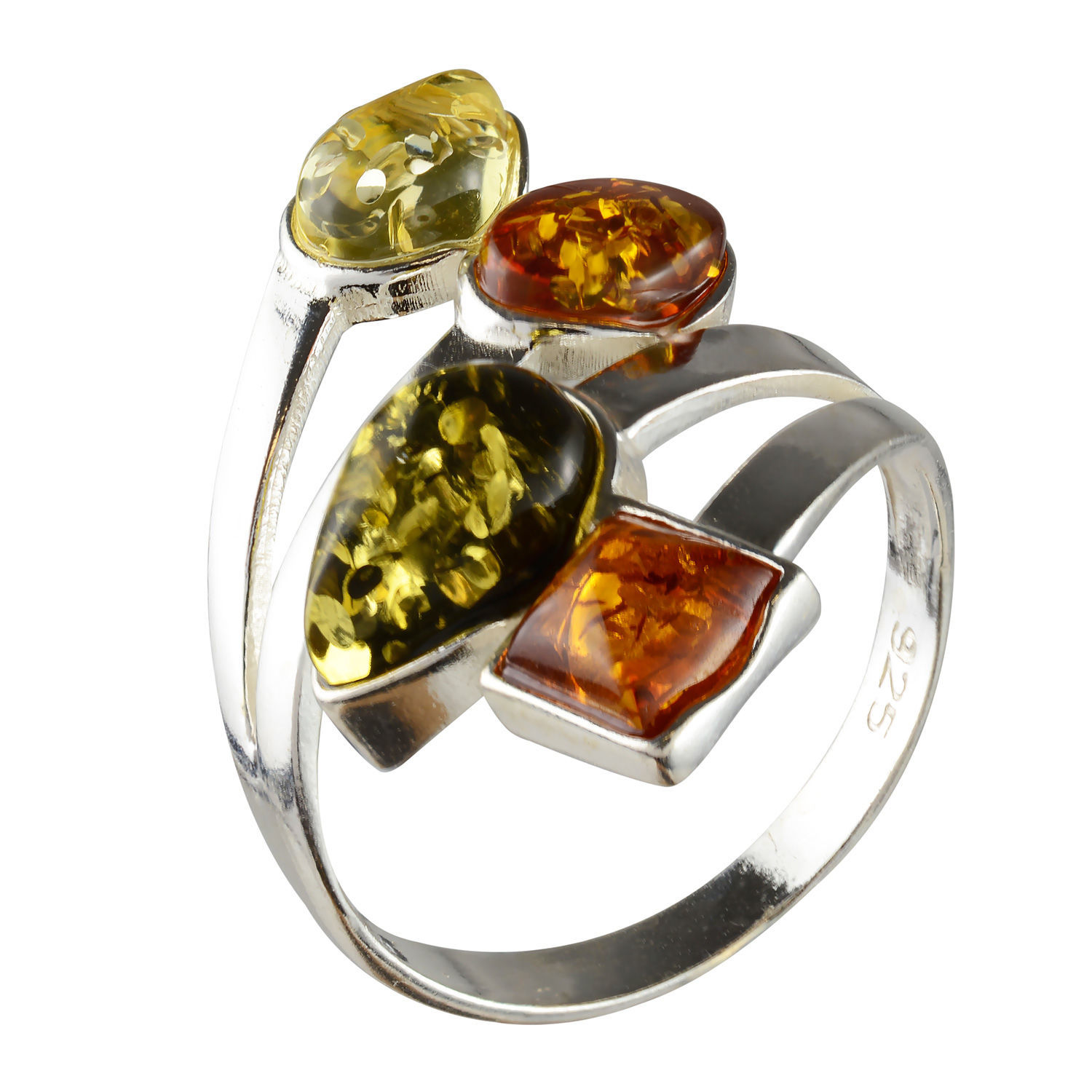 Such a beautiful and elegant ring! The multicolored amber stones are eye-catching, and the sterling silver band is very well-made. Highly recommend it for anyone looking for a special piece of jewelry.