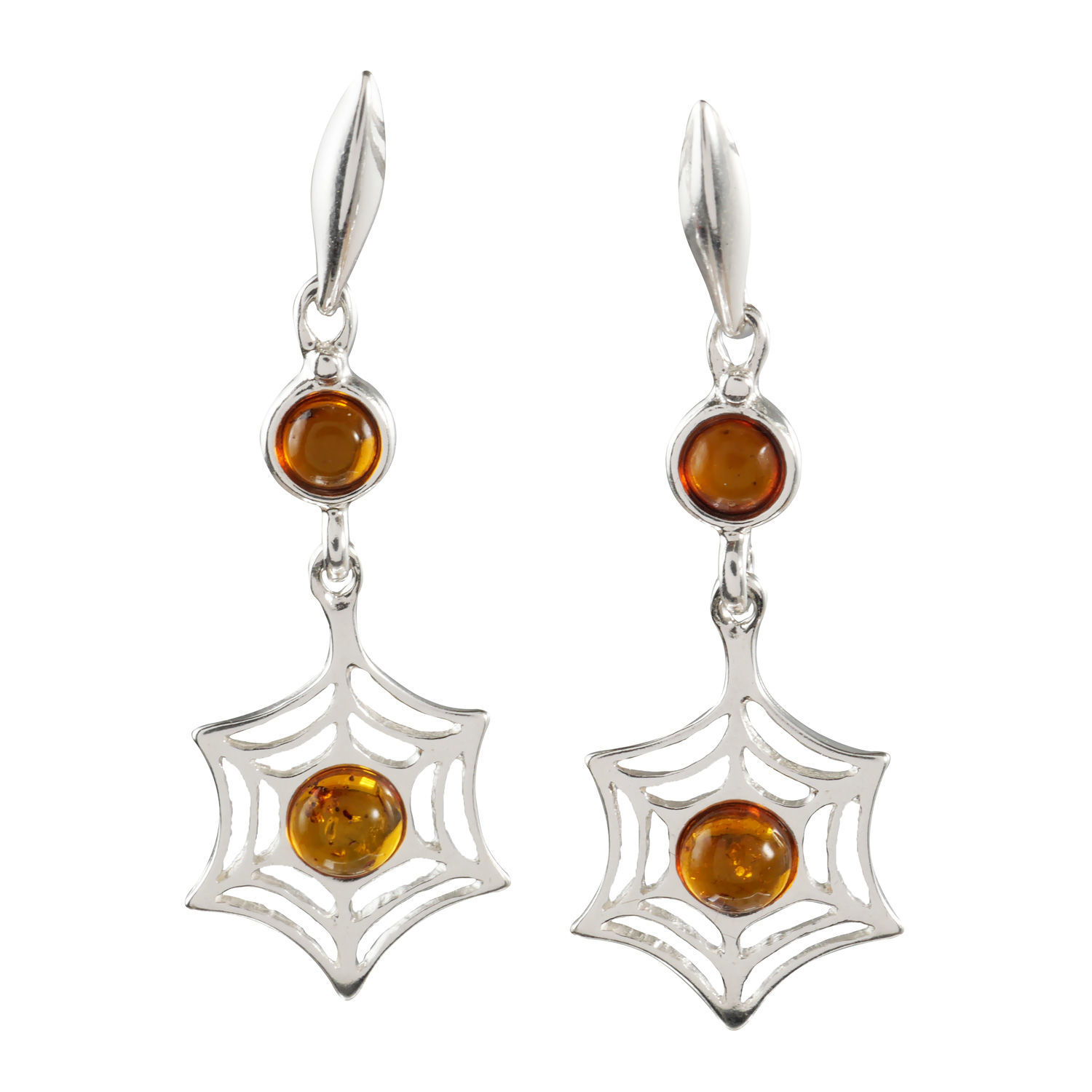 Sterling Silver and Baltic Honey Amber Spiderweb Earrings