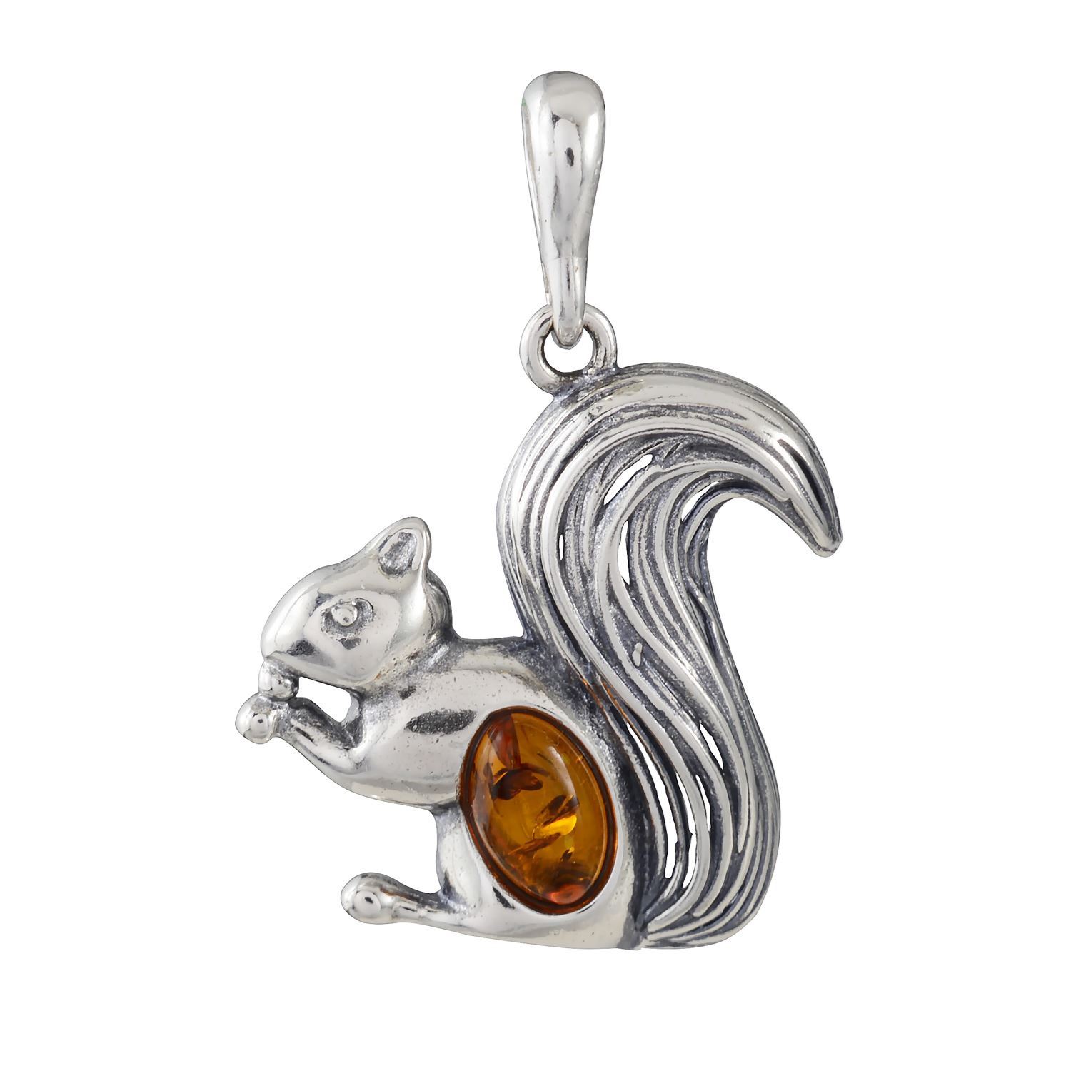 - Sterling Silver and Baltic Honey Amber Squirrel With a Nut Pendant Necklace