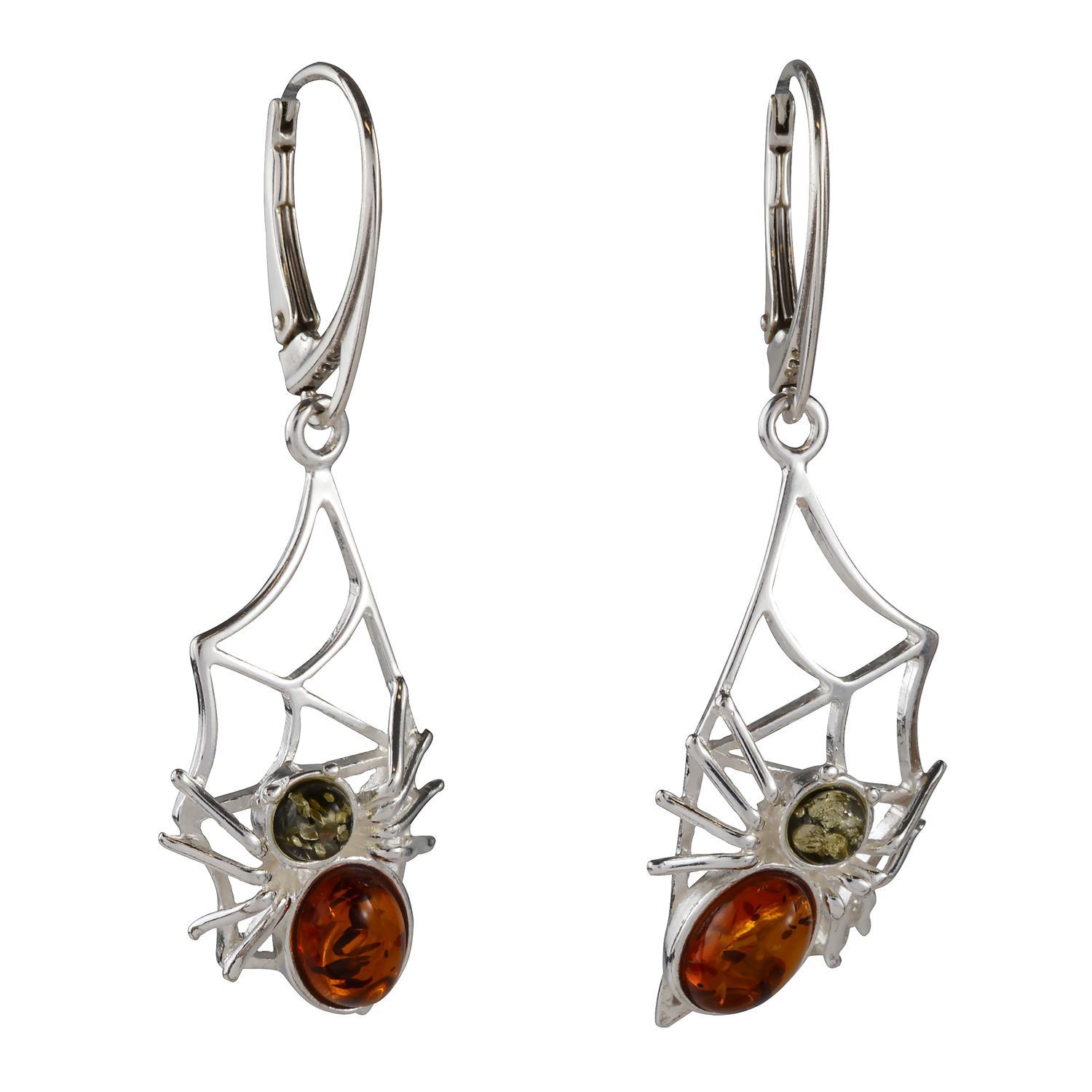 These sterling silver and Baltic honey and green amber French leverback earrings are the perfect accessory for a special occasion, like a Halloween party or simply a glamour addition to any woman's jewelry collection. The earrings feature a beautiful spider working on his web design, with realistic details that will make you feel like you're being watched by a spider!