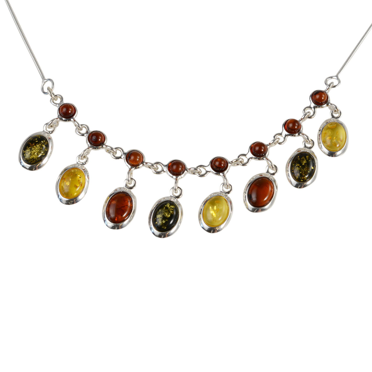 Sterling Silver and Baltic Multicolored Amber Necklace "Lolanda"